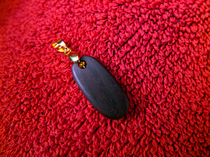 Je lui fabriqué moi même un de ses cadeau, un pendentif en ébène. J'ai récupéré un beau bloc que je destine à faire des manches de couteaux et quelques bijoux pour ma fille et mon épouse. Pour le moment je n'ai réalisé que ce pendentif.