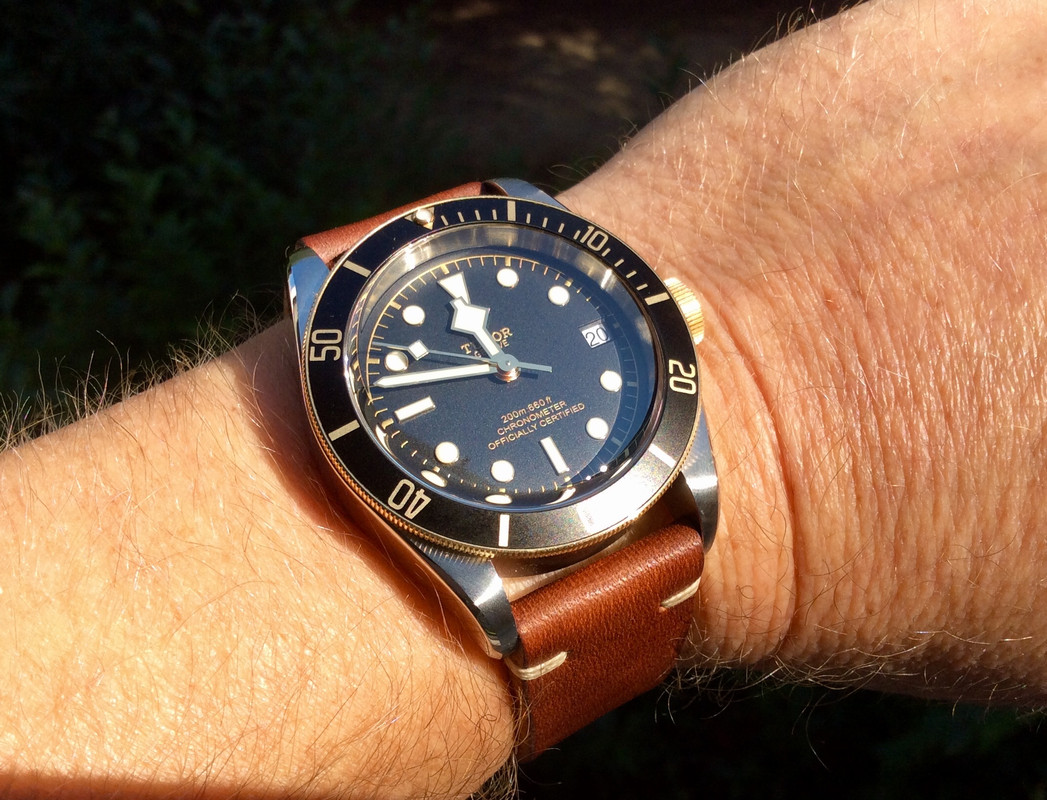 Mises à part les versions GMT, S&G et Steel, je n'ai jamais vu une telle Black Bay (cadran gilt, lunette noire) avec le quantième.