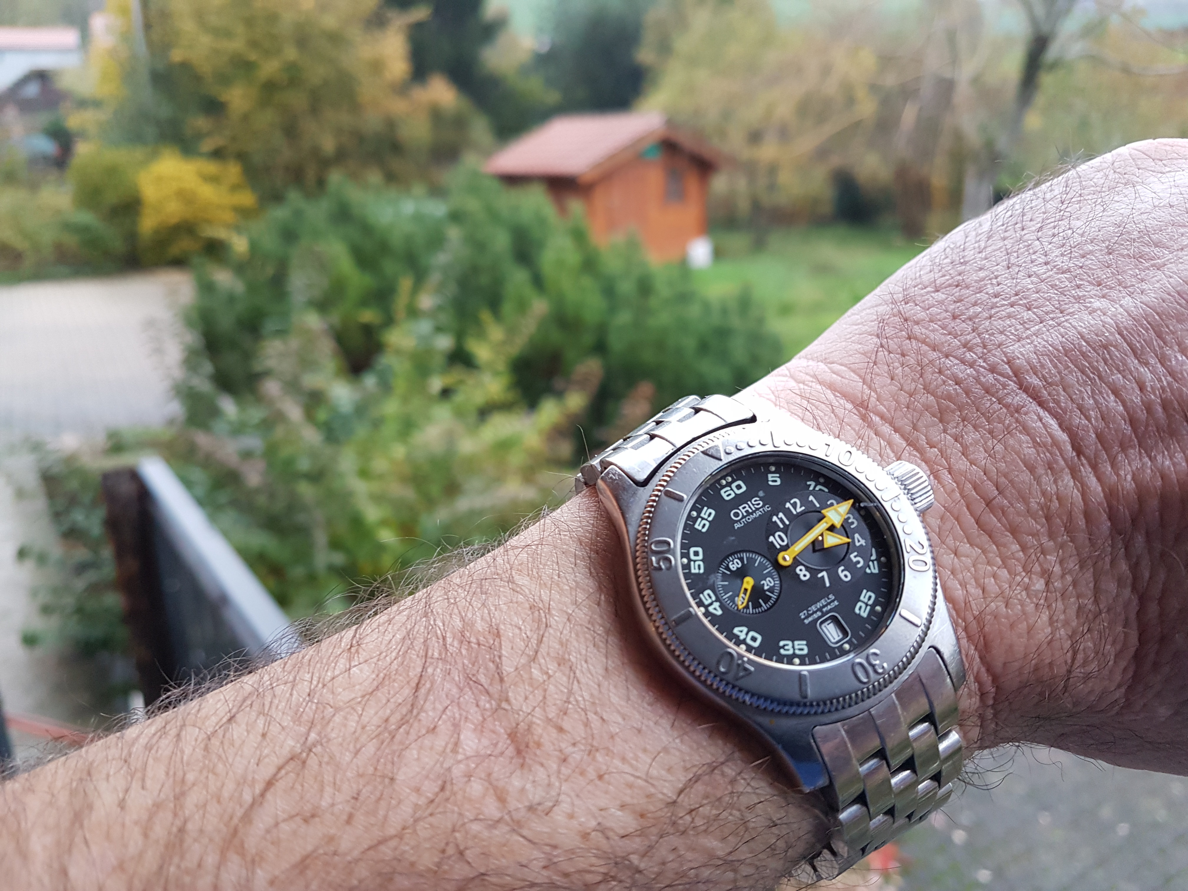 Cependant, en attendant la neige attendue pour ce soir,j'ai trouvé une autre occupation en passant d'anciennes montres qui "trainent" de ci de là, dont cette minuscule Oris âgée de 20 ans...
