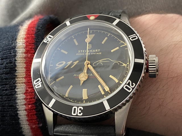 Très joli mais pour le coup, exceptionnellement Steinhart aurait pu changer l'aiguille de cette Ocean One parce que ça fait un peu bizarre une aiguille "mercedes" pour une montre à l'effigie de la formidable 911 !!
