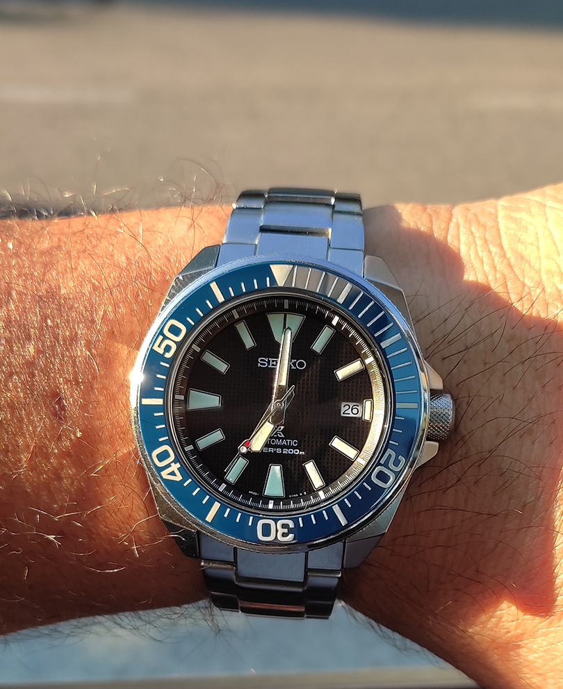 Bon elle n'est toujours pas bleue. Ne le sera jamais. Mais bon quand un constructeur table sur des possibles reflets du verre au lieu de bosser correctement sur le cadran...