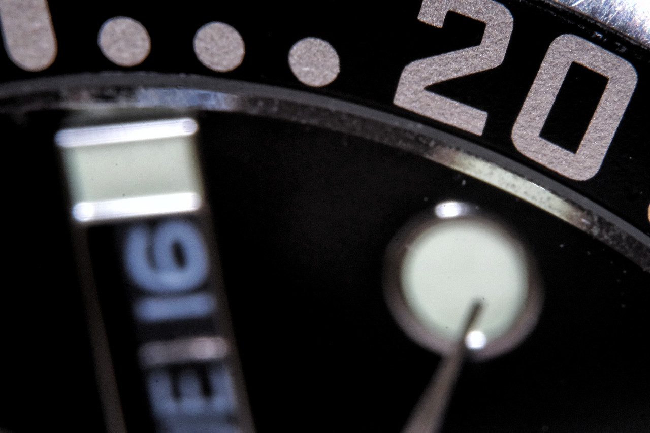 Pour l’aiguille des secondes, c’est le contrepoids qui est lumé.