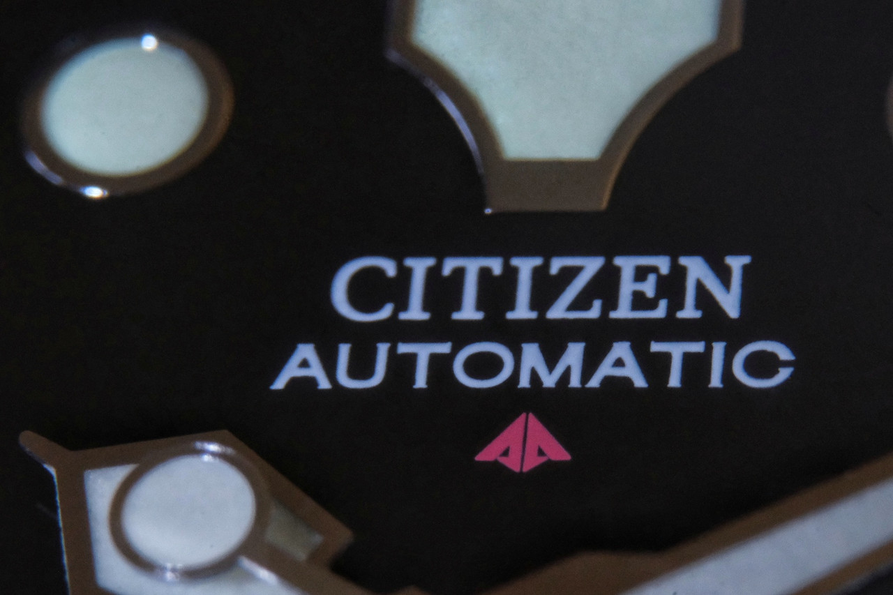 En blanc, entre 12h et le centre, se trouvent les indications : CITIZEN AUTOMATIC.