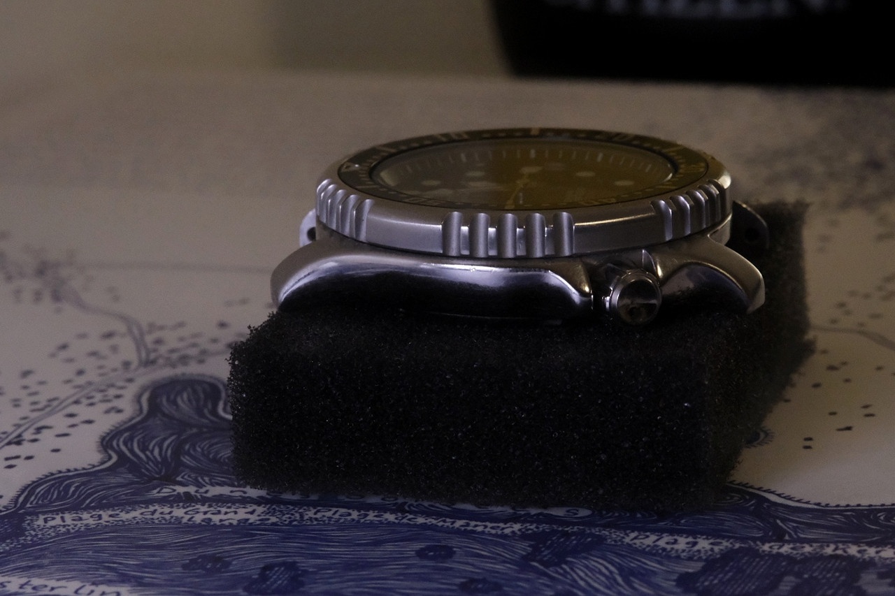C’est une montre peu chère, mais le packaging est bien plus élaboré que pour les dernières montres présentées avec cette géniale bouteille de plongée jaune !